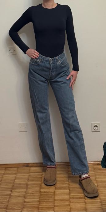 Fotografirane na osobi veličine XS/EU34 i stegnute straga kako bi se prikazalo kako izgledaju ako ih želite nositi visoko u struku. Visina modela: 178 cm.