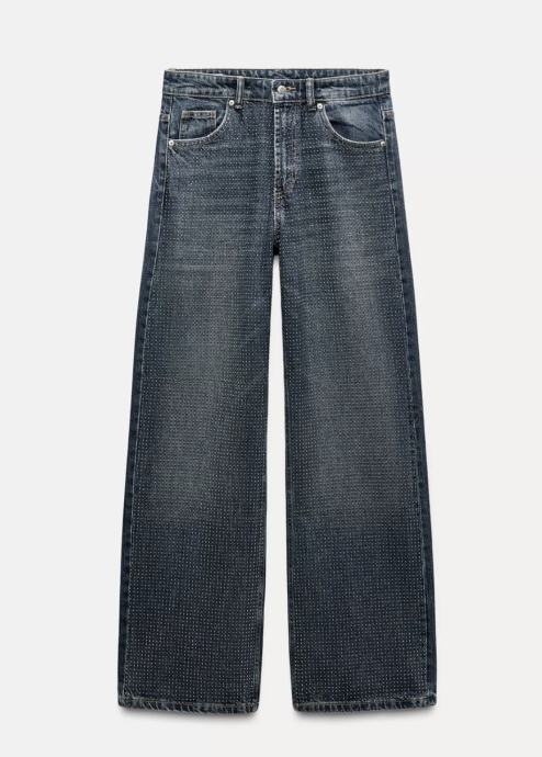 Potpuno nove Zara traperice plave boje veličine 34 Dostupne i u veličini 36. Ukrašene cirkonima. Još uvijek imaju etiketu i nikada nisu nošene. Savršene su za posebne prigode ili za svakodnevne kombinacije kada želite zablistati.