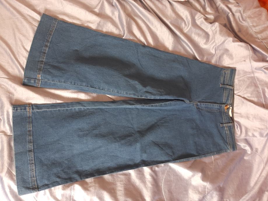 Ženske širokih nogavica traper hlače H&M. Nošene svega par puta, kao nove. Rastezljive. Dužina od vrha pasice do dolje 93cm, dužina međunožja 66cm, širina pasice 40cm bez rastezanja. Širina nogavice 29cm. Vel. 40-42