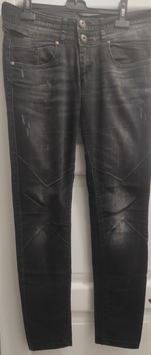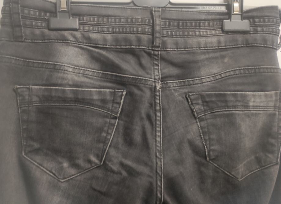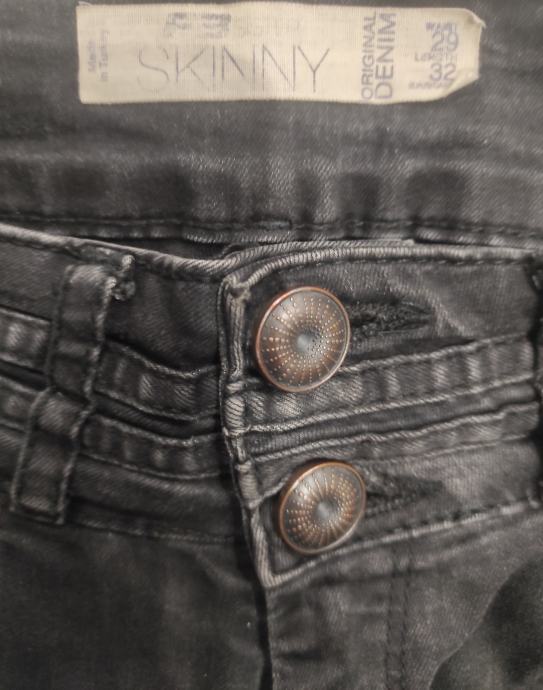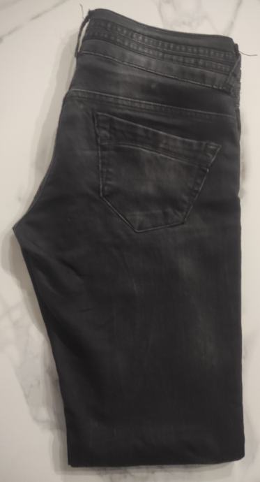 Prodajem ženske traperice veličine 29/32, boja tamno siva/crna isprana. Nošene i očuvane. Duljina traperica je 105 cm.