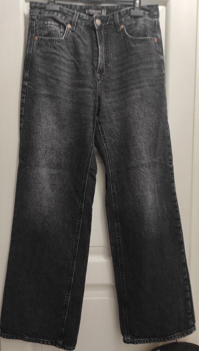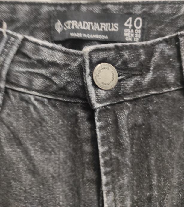 Prodajem ženske traperice veličine 40, kupljene u Stradivariusu, crne boje, nošene malo, bez oštećenja i tragova nošenja. Duljina traperica je 110 cm.