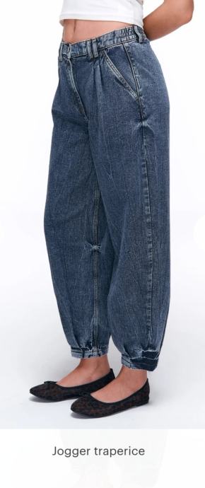 Prodajem ženske jogger traperice, nove s etiketom. Plave su boje, veličine 42 europski. Karakterizira ih opušteniji kroj s elastičnim strukom i skupljenim nogavicama pri dnu.