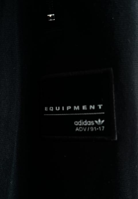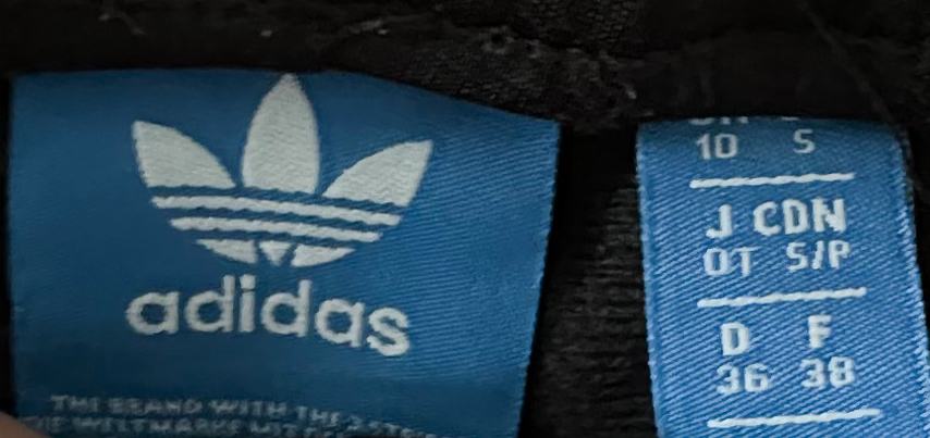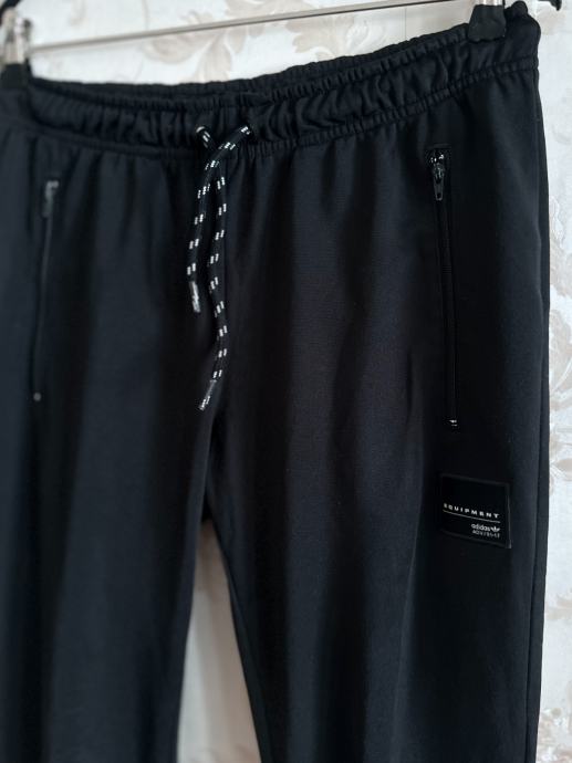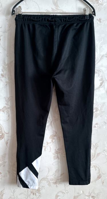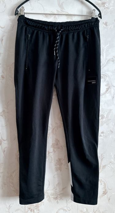 Crne elastične hlače s bijelim umetkom na jednoj nogavici.