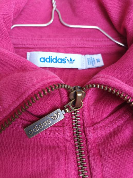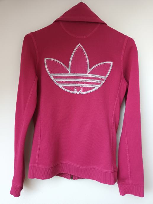 Adidas oroginals jakna 36 predivne boje fusije sa džepovima na kopčanje sprijeda i velikim lotusovim cvijetom na leđima, bez mana kopčanje na zip duljina po sredini 57cm bez okovratnika širina preko grudiju 46cm na dnu 40cm