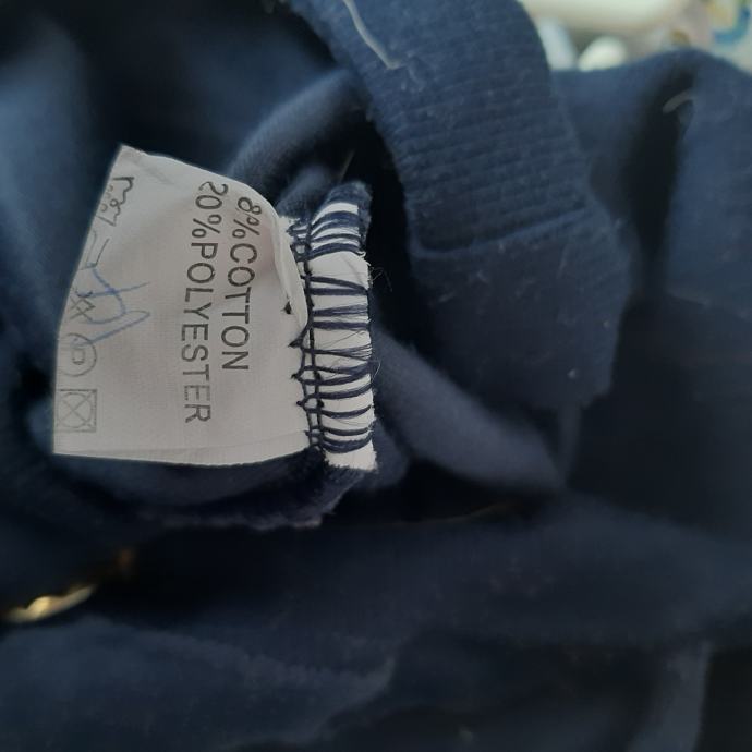 Tamno plava trenirka pliš 38 donji dio, ima i pripadajuću vezicu koja mi se izvukla u pranju pa je nema na slikama