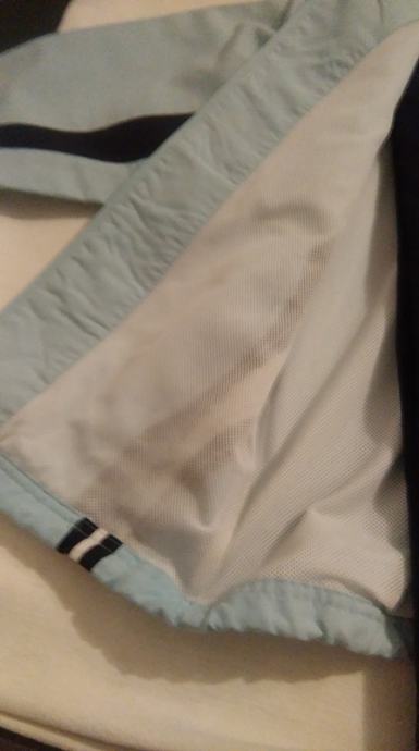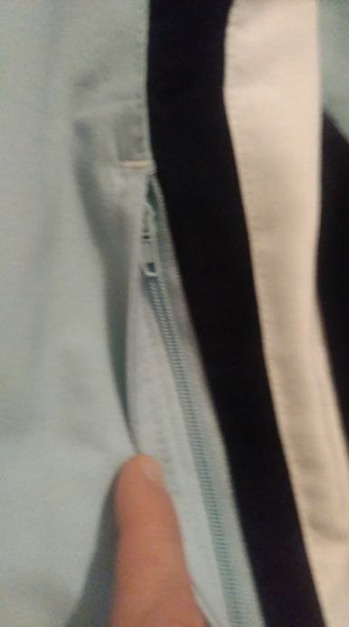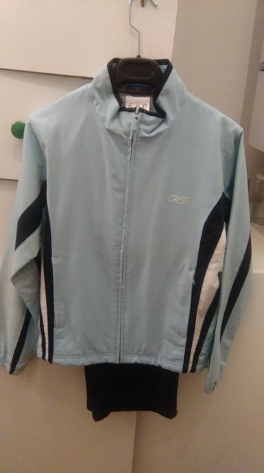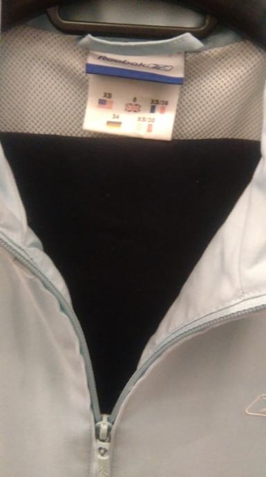 Prodajem komplet trenirku svjetlo plavi sa tamno plavom bojom, vel. 34, marke "Reebok". Sastav: 100% pollyester, mjere: DONJI DIO:dužina nogavice sa vanjske strane 93cm, a sa unutarnje strane 71cm, širina nogavice 21cm, širina struka (guma) 26,5cm. g GORNJI DIO: širina 45cm, dužina 56cm, dužina rukava 55cm. Trenirka je maksimalno očuvana, bez oštećenja i fleka.