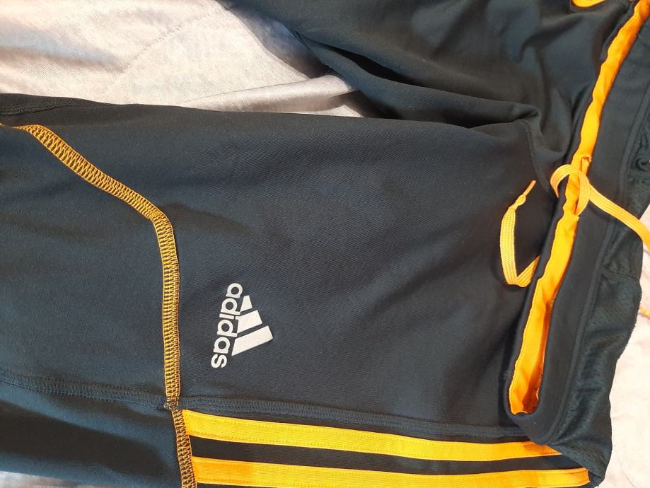 Sportske ženske tajice Adidas par puta nošene, ali ipak ne odgovara veličina. Bez ikakvih tragova nošenja. Jako lijepog modela, skupo plaćene. Vel. 38, ali može i 40