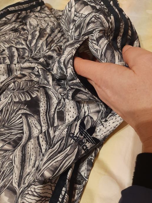 Orginal sportske hlače - trenirka Adidas. Nošene svega par puta. Bez ikakvih oštećenja. Sa svake strane nevidljivim džepovima sa zatvaračem. Na kraju nogavica također zatvarači. Vel. 38