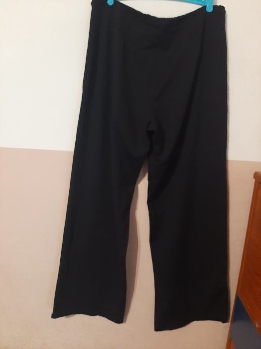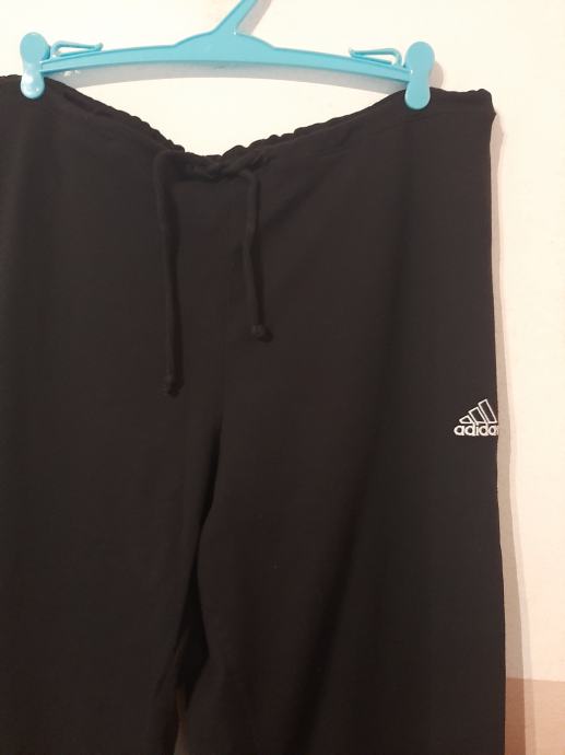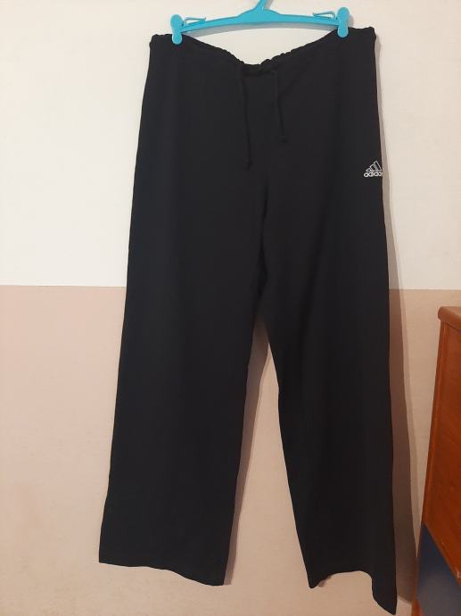 Ženski crni donji dio trenirke Adidas. Pamučna. Široke nogavice. Nošena kratko. Bez oštećenja. Vel. 40 - 42. Dužina od vrha pasice do dolje 98cm, dužina međunožja 72cm, širina nogavice dolje 26cm