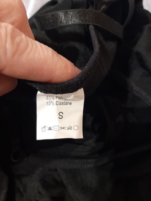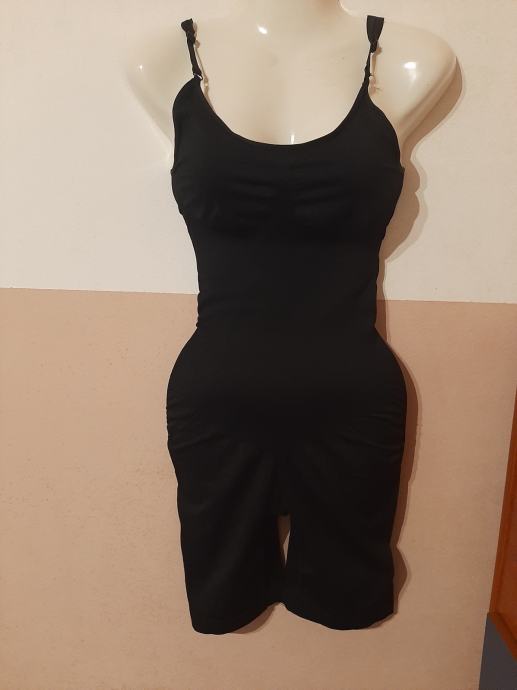 Potpuno novi crni ženski body sa kratkim nogavicama. Pojačanje stezanja na dijelovima gdje je to potrebno. Vel. 36-38