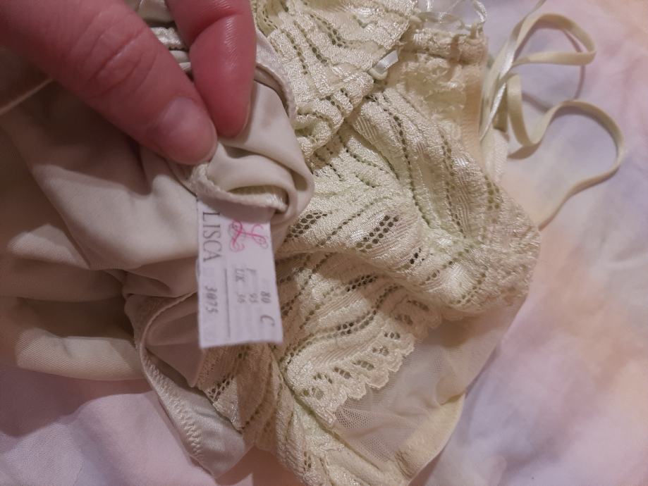 Svijetlo zeleni body tanga Lisca. Nošeni, ali očuvani. Vel. 80C. Košarice od čipke sa žicom.