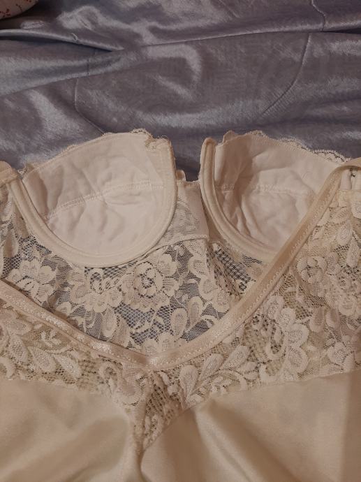 Bijeli prekrasni sa čipkom bodi. Nošeni vrlo malo. Bez oštećenja. Vel. 36-38 (75B). Košarice lagano podstavljene