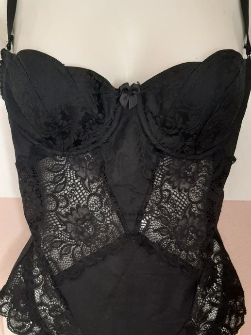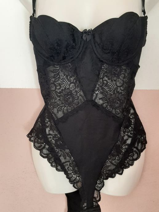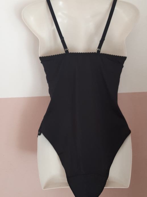 Crni ženski bodi lagano podstavljenim košaricama. Nošeni, ali očuvani. Vel. 75B