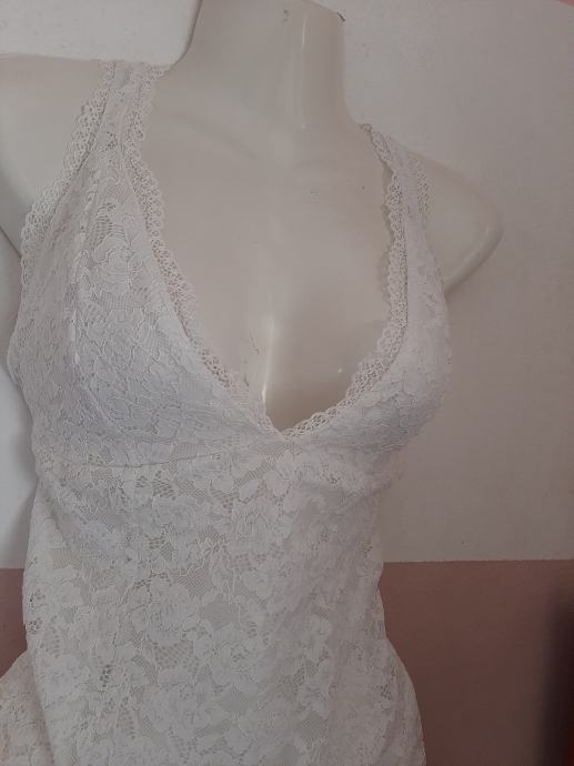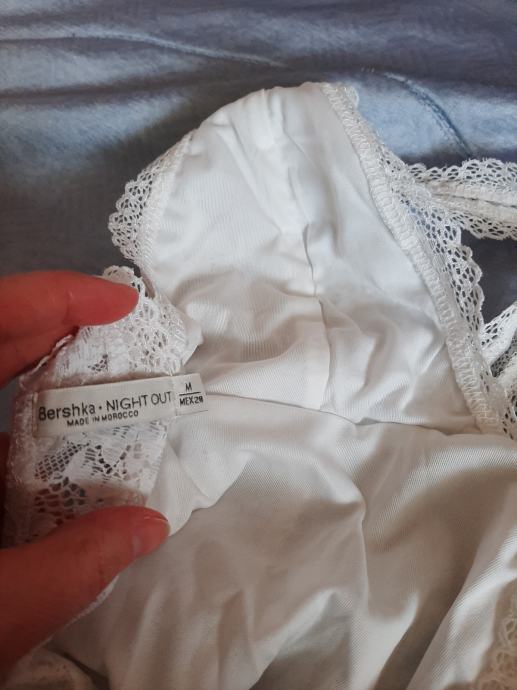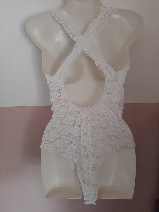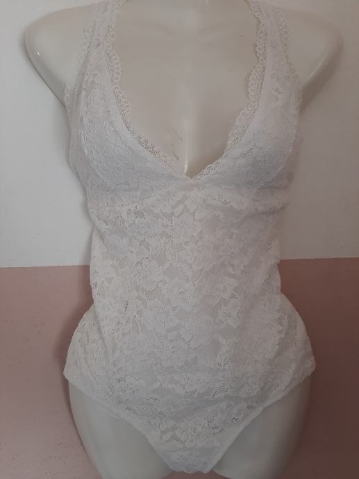 Bijeli ženski body sav od čipke Bershka. Nošeni, ali očuvani, vrlo atraktivan i udoban. Vel. 38