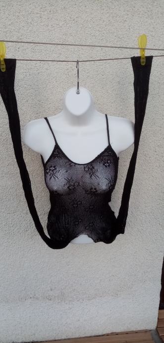 Crni mrežastim jednodijelni body sa čarapama L, XL, XXL. Body za cijelo tijelo