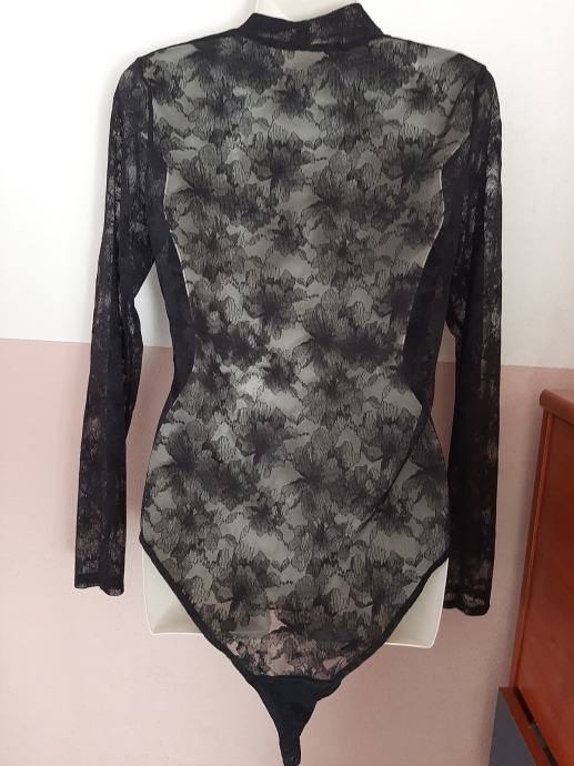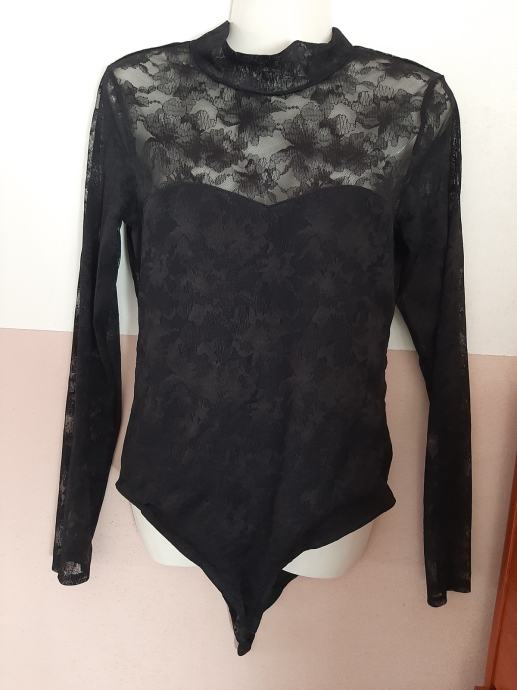 Crni novi ženski bodi sa čipkom. Skinuta samo etiketa. Vel. 38