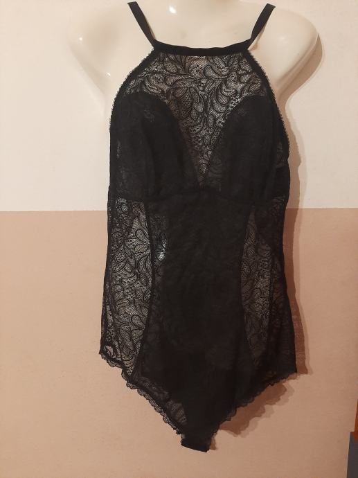Crni novi body sa čipkom. Jednom obućeni. Kao novi. Vel. 38-40