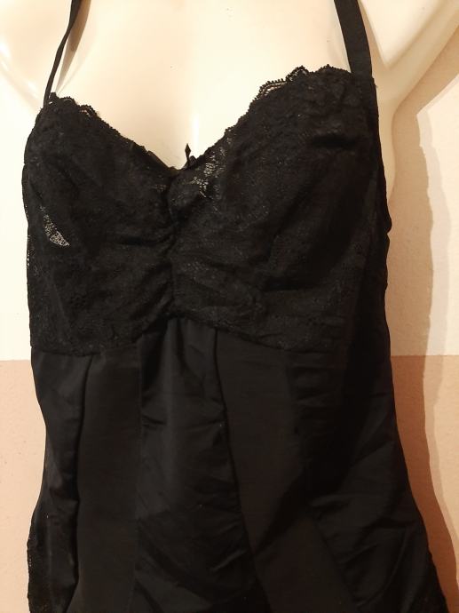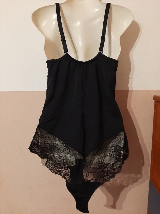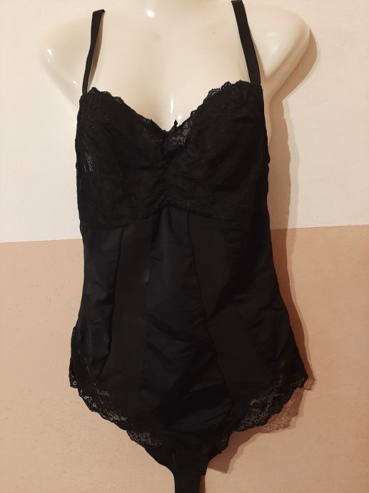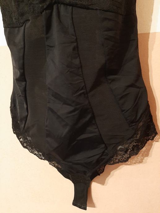 Crni stezni ženski body. Nošeni svega par puta. Kao novi. U kombinaciji sa čipkom. Dio oko grudiju od čipke. Vel. 44