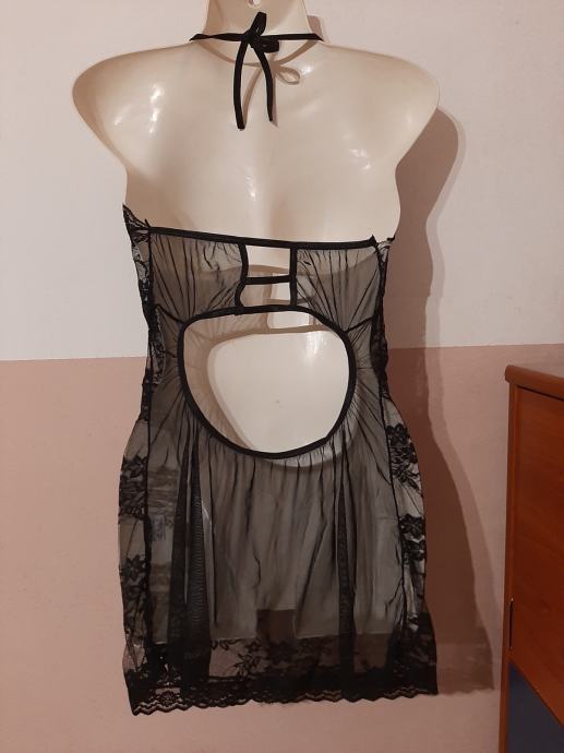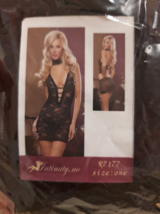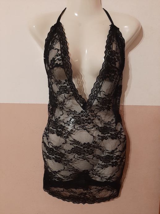 Prekrasni sav od čipke potpuno novi sexi komplet koji se sastoji od spavaćica, tange i podvezica. Vel. 36. Cijena kompleta je 20 eura.