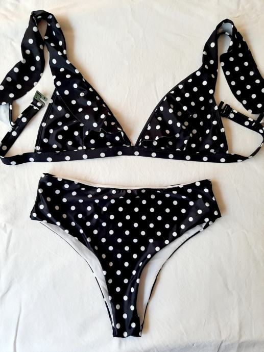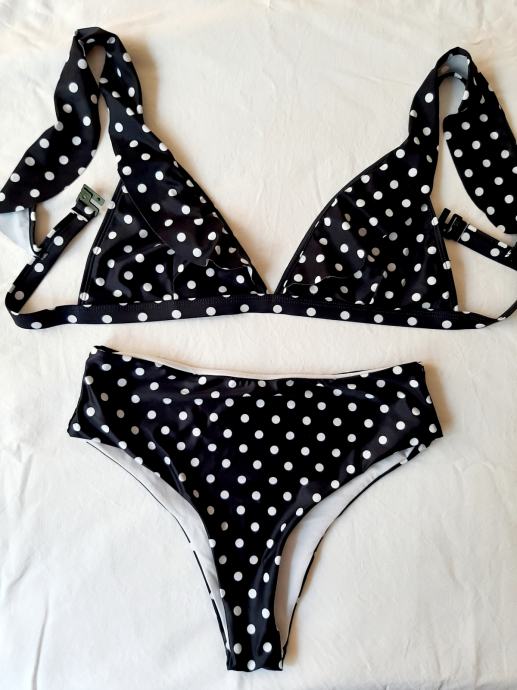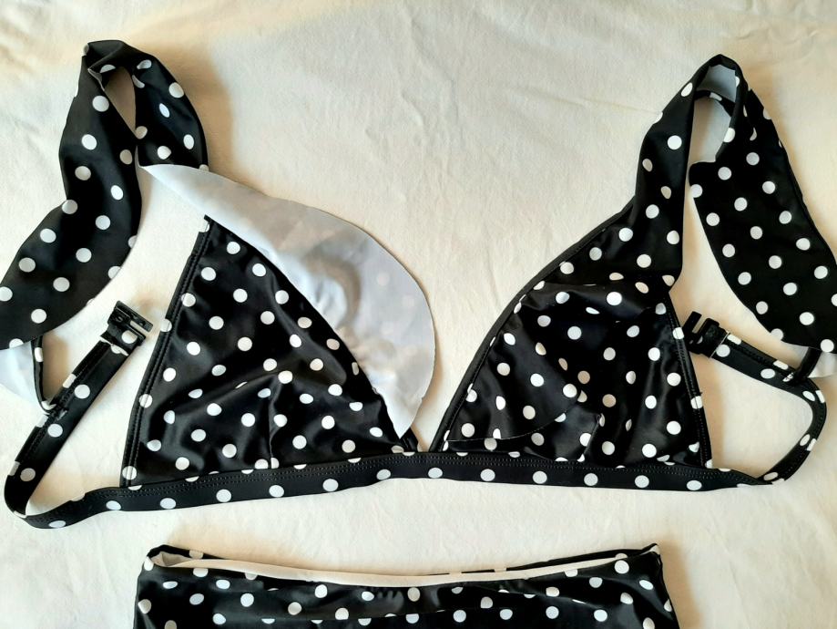 2+1 gratis!Novi crno-bijeli, na točkice dvodjelni kupaći kostim, br.38