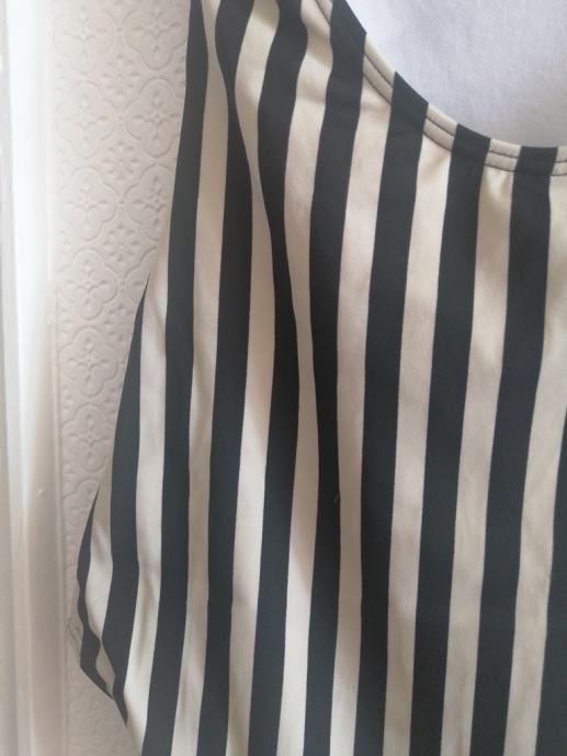 U kombinaciji crnih prugica i krem podloge.
