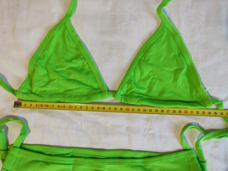 Dvodijelni kupaći kostim - bikini, zelene boje, veličina one size, dimenzije vidljive na fotografijama.