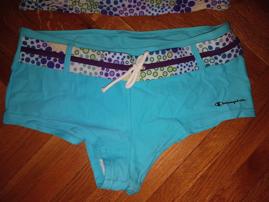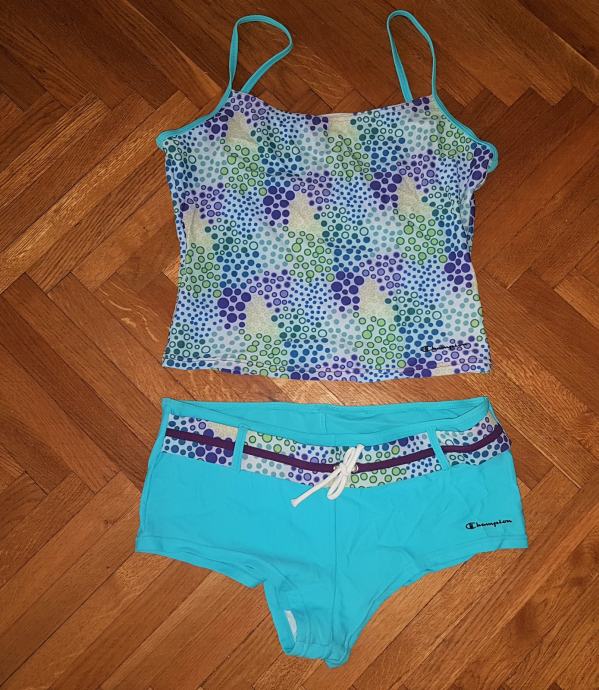 Sexy izuzetno atraktivan komplet CHAMPION vel S/M rastezljiv original 100%. Komplet se sastoji od gornjeg dijela kao top na bretele /potkosuljica i donji dio bokserice / brazilke sa remenom . materijal kao kupaci cvrst , neproziran lako se suši . lycra poliester .NOVO!
