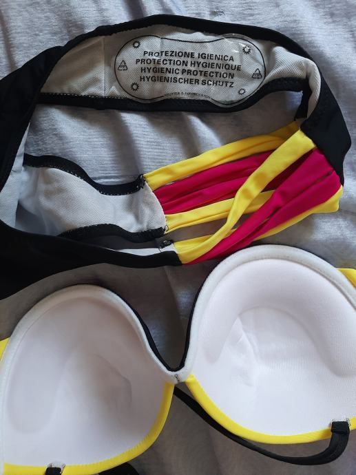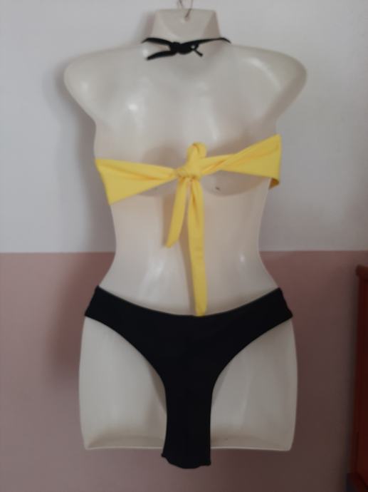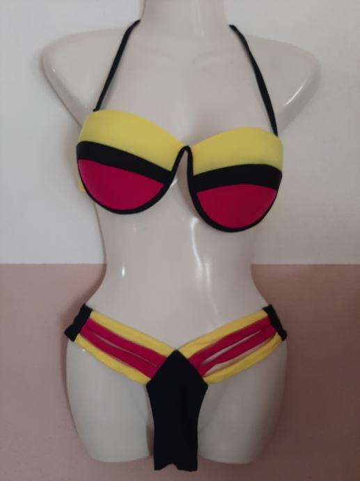 Novi, nikad nošeni ženski dvodjelni kupaći kostim. Košarice B podstavljene, gaćice tange. Vrlo atraktivni kostim. Vel. 36-38