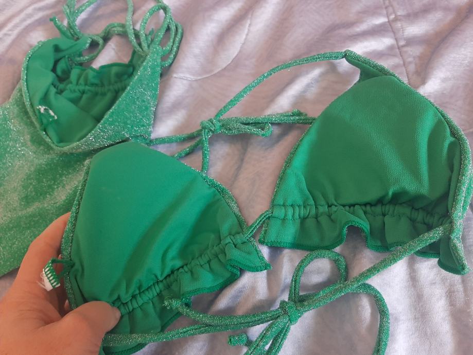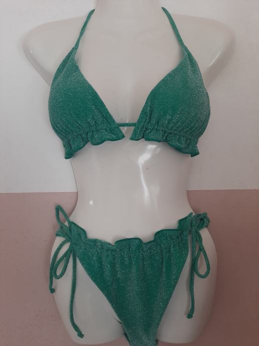 Prekrasni ženski dvodjelni kupaći kostim. Nošen svega dva puta, bez oštećenja. Košarice s umecima koji se mogu izvaditi, vrlo atraktivan. Vel. 38