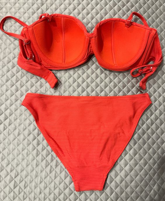 Prodajem novi, nikad nošeni H&M kupaći kostim u crvenoj boji. Veličina gornjeg dijela je 75B, a donjeg 36. Naramenice na gornjem dijelu su odvojive.