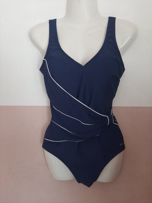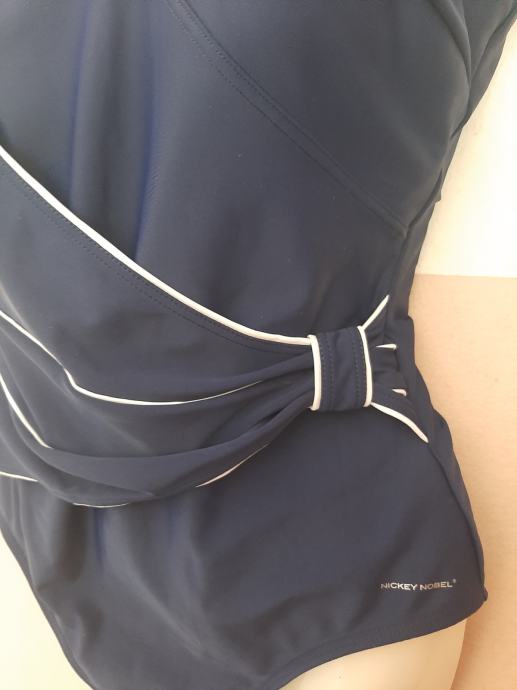 Tamnoplavi jednodjelni kupaći kostim Nickey Nobel. Nikad nošeni, skinuta samo etiketa i opran. Vrlo kvalitetan i lijepog dizajna. Košarice lagano podstavljene. Vel. 36