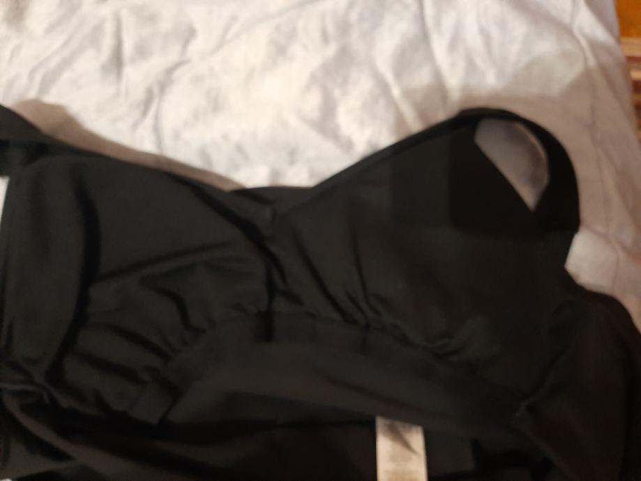 Crni jednodjelni ženski kupaći kostim. Skinuta samo etiketa. Košarice podstavljene s umecima koji se mogu izvaditi. Vrlo lijepog kroja. Vel. 42