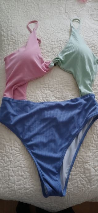 Moderan,seksi jednodijelni kupaći kostim s puno proreza ali su gaće lijepe duboke. Dvobojan,veličina 40/42. Mogućnost slanja,kontakt 0912531262