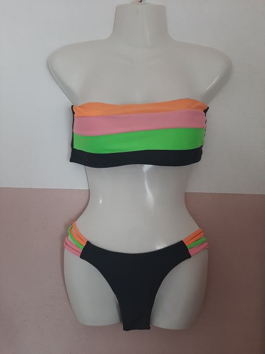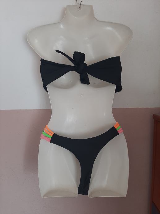 Prekrasni ženski dvodjelni kupaći kostim s tangama. Nošeni svega par puta. Košarice podstavljene s umecima koji se mogu skinuti. Vel. 38