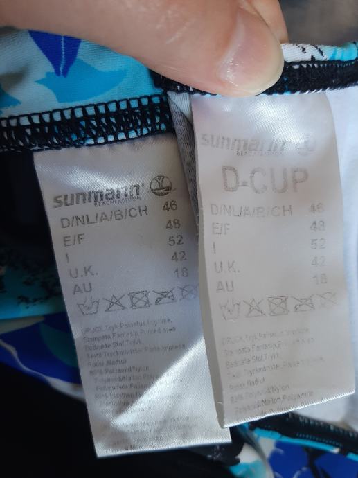 Ženski dvodjelni kupaći kostim nošen svega dva puta. Kao novi, bez ikakvih oštećenja. Gačice visokog kroja koje prekriju trbuh. Košarice podignete s žicom. Vel. 46, košarice D