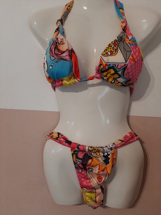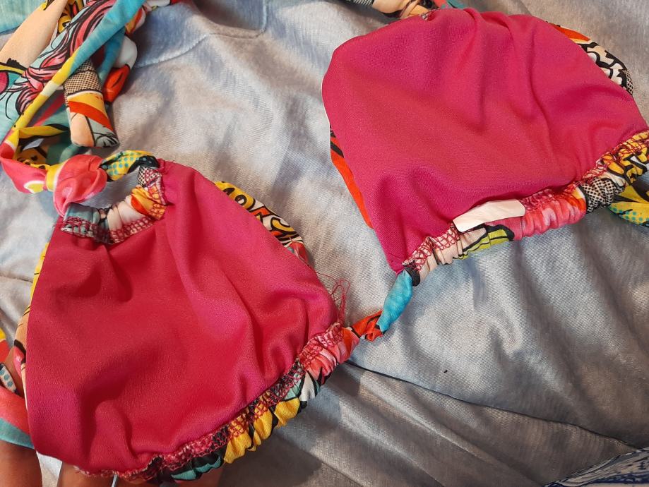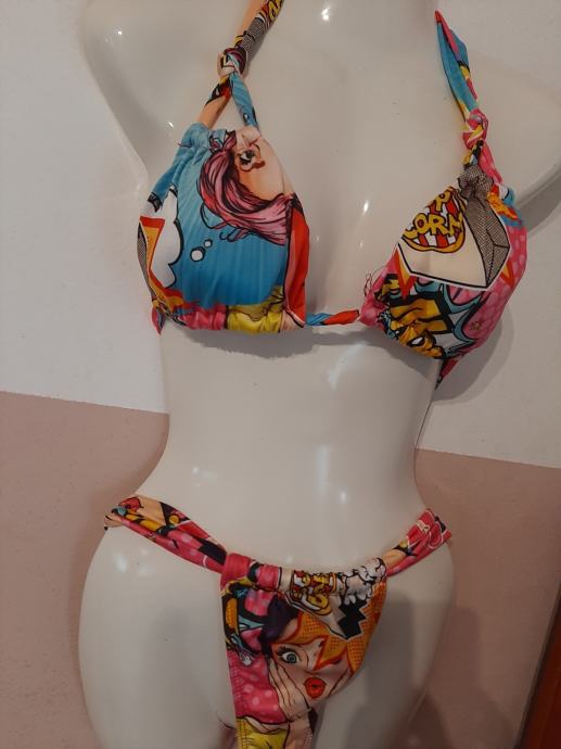 Vrlo atraktivan dvodjelni ženski kupaći kostim. Košarice lagano podstavljene. Vrlo modernog dizajna. Nošen svega par puta. Vel. 36-38