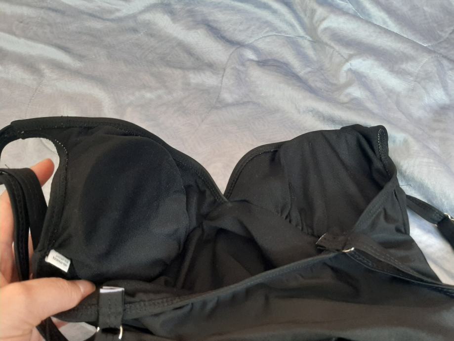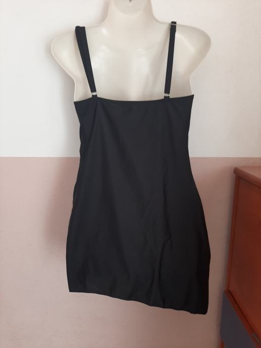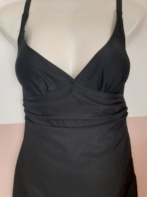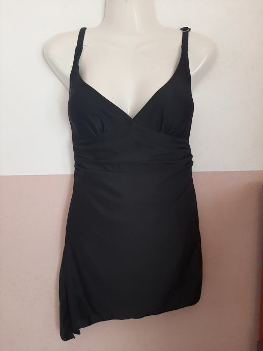 Crni jednodjelni kupać ženski kostim s umecima koji se mogu skinuti. Kostim - haljinica. Vel. 38
