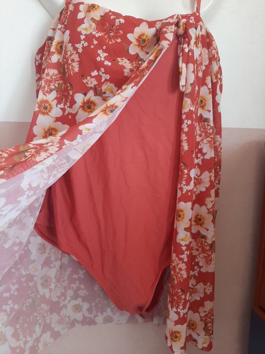 Prekrasni jednodjelni ženski kupaći kostim- haljina. Košarice podstavljene s umecima koji se mogu skinuti. Novi, samo oprani. Vel. 50