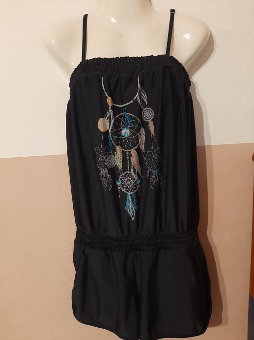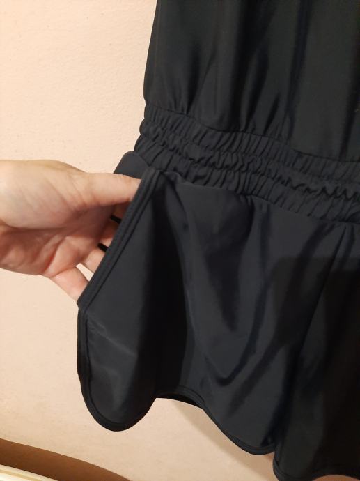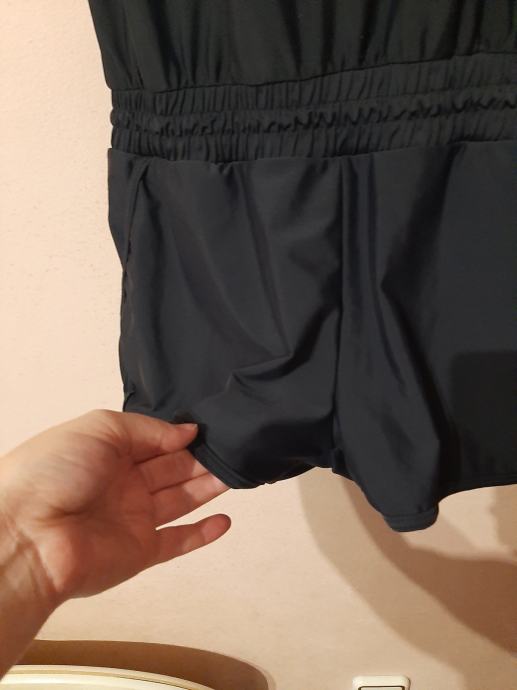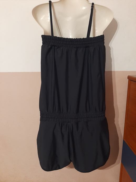 Ženski jednodjelni kupaći kostim s hlačicama. Nošen svega par puta, bez ikakvih oštećenja. Od naprijed podstavljen s umecima koji se mogu skinuti. Naramenice se također mogu skinuti. Vrlo lijepi stoji. Piše vel. 38, ali može i 40