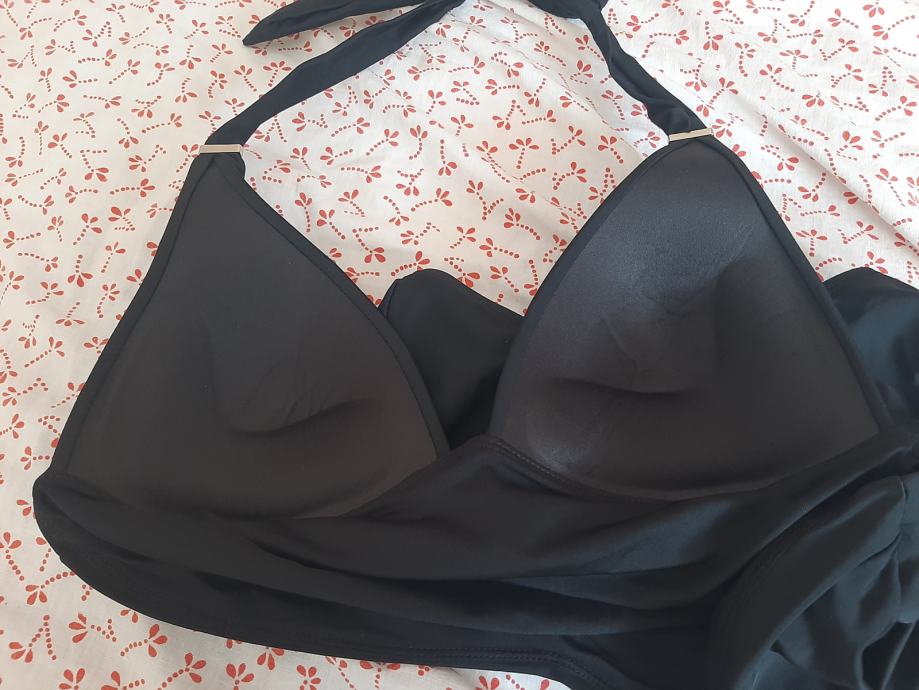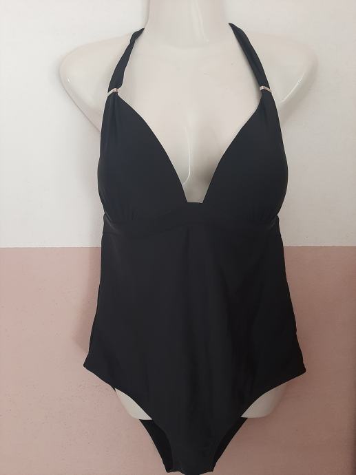 Crni jednodjelni ženski kupaći kostim. Skinuta samo etiketa. Košarice podstavljene push up. Vrlo lijepog modernog dizajna. Vel. 40