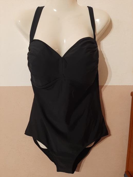 Crni ženski jednodjelni kupaći kostim. Nošeni svega par puta, bez ikakvih oštećenja. Košarice lagano podstavljene. Vel. 46