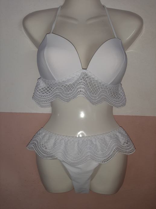 Prekrasni novi dvodjelni bijelu kupaći kostim u kombinaciji s čipkom. Košarice podstavljene. Vel. 36