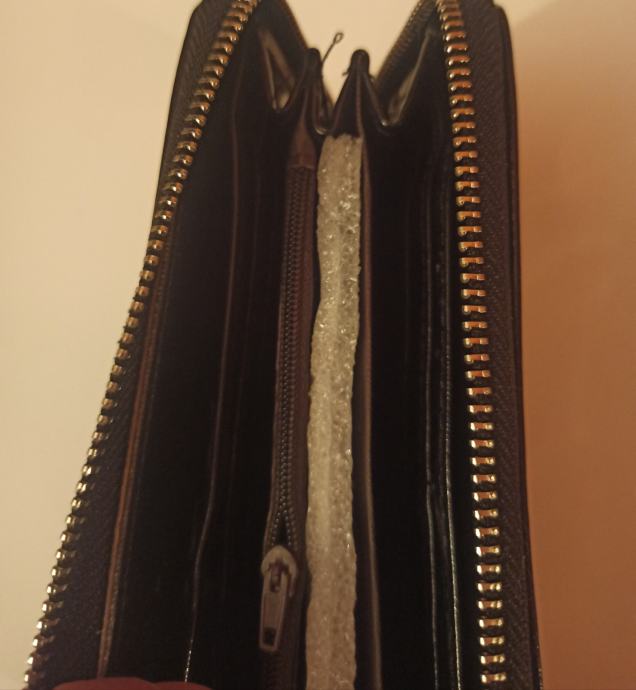 ARMANI ZENSKI NOVCANIK LAKIRANI CRNI. NOVI MODEL PROLJECE 2024G. JAKO PUNO MJESTA ZA OSOBNE DOKUMENTE,I RAZNE DRUGE SITNICE ( KARTICE,KOVANICE,KLJUCEVI ITD ). DIMENZIJE 19X10CM. CIJENA 25 EURA. MOGUĆNOST PLAĆANJA POUZEĆEM.