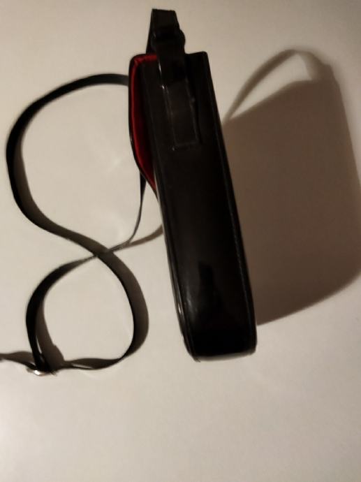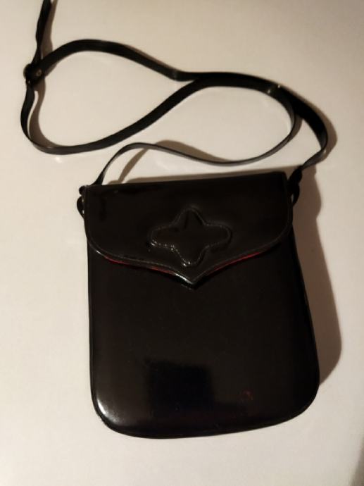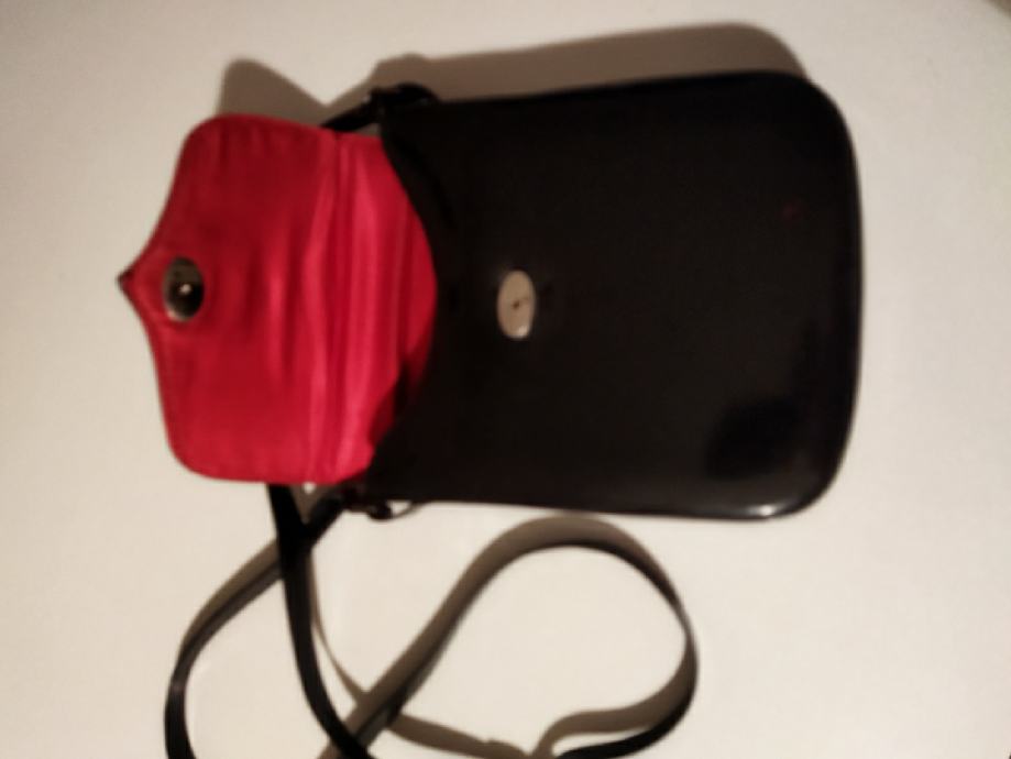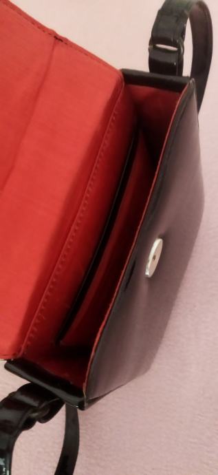 crna lak koža,dugog remena,proizvod zagrebačkog obrtnika,podstavljena crvenom podstavom