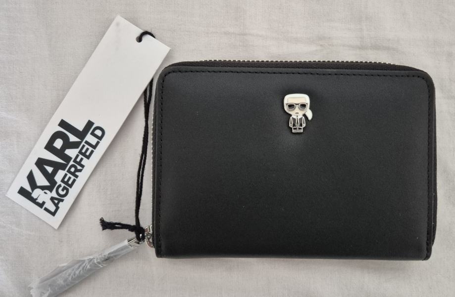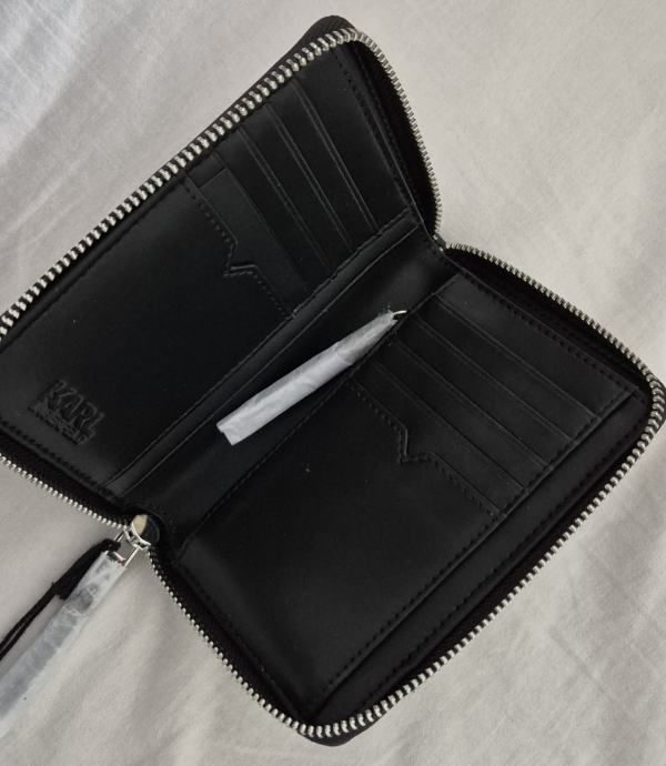 Prodajem novčanik Karl Lagerfeld The Ikonik Pin Md Fold Wallet A999 u crnoj boji, sa zip-around zatvaračem. Novčanik je casual i neformalan, izrađen od visokokvalitetne kože koja mu daje dugotrajnu izdržljivost i elegantan izgled.