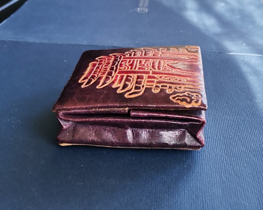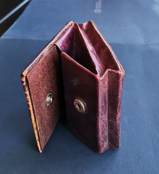 Zanimljiv mali kožni novčanik za kovanice, dimenzije 7x7 cm, visina 2 cm