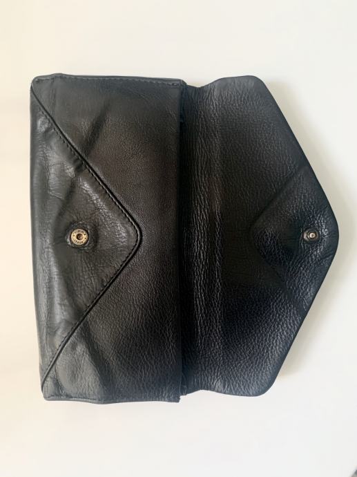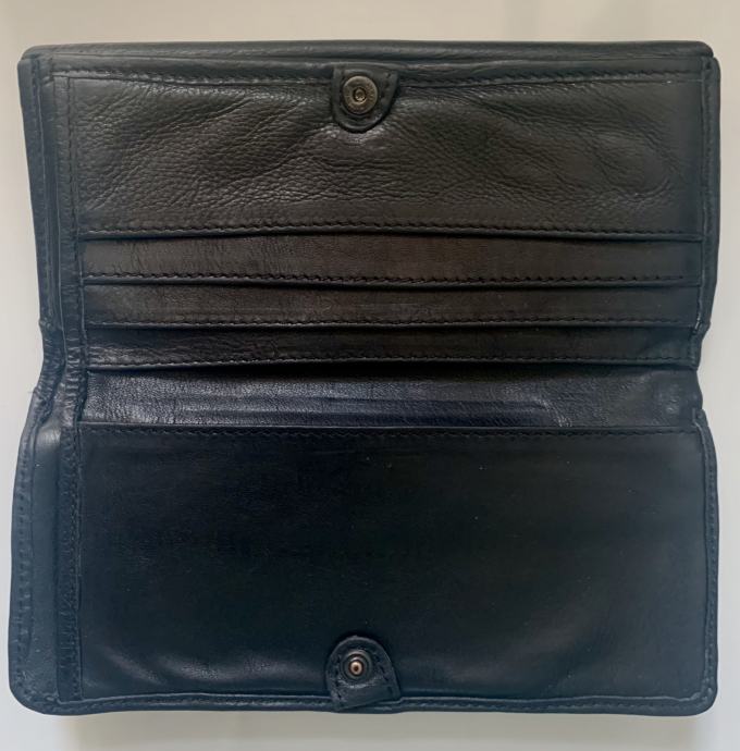Ima dio za kartice, kovani novac, te dva velika pretinca sa strane.