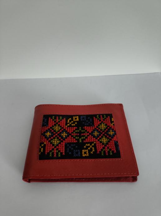 Kožni novčanik s vezom. Rukotvorine. Iz osamdesetih. Nekorišten. 13 x 10 cm