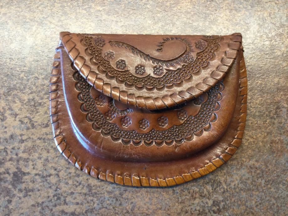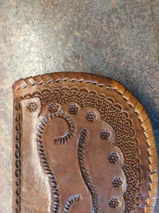 Novčanik od prave kože, ručni rad, kupljen krajem 70tih kao suvenir, bogato ornamentiran, vintage, prvenstveno dekorativni predmet.