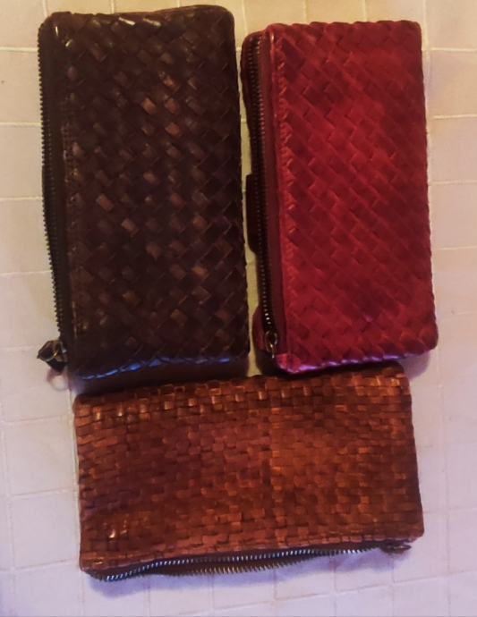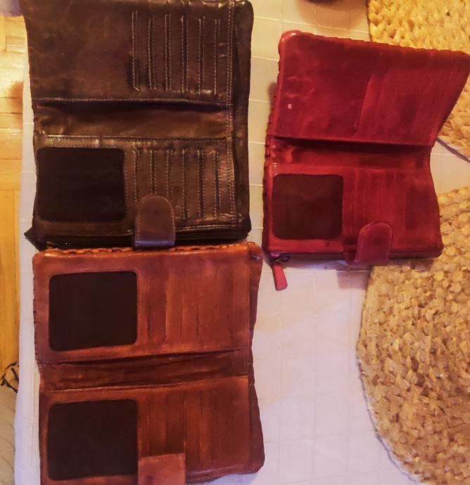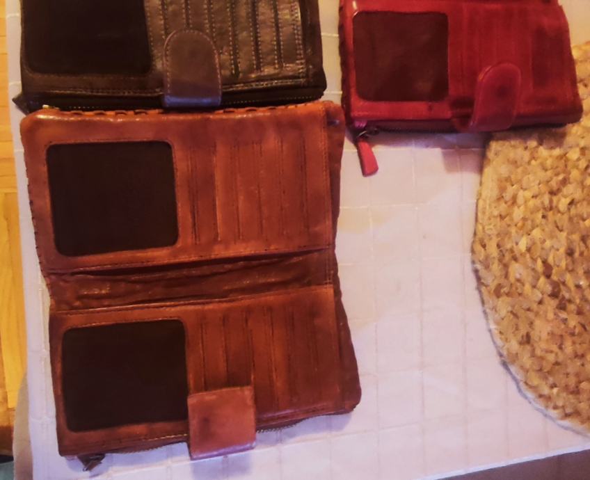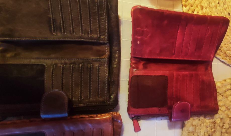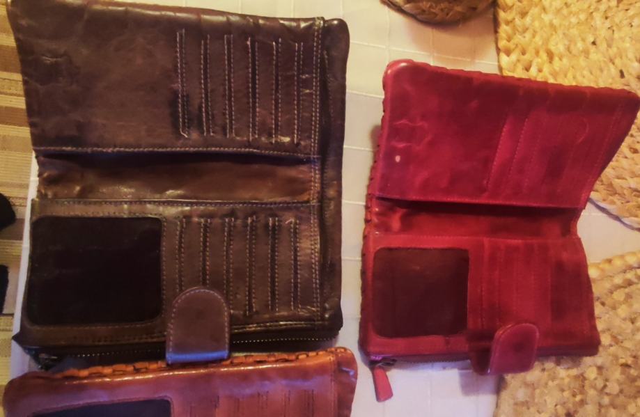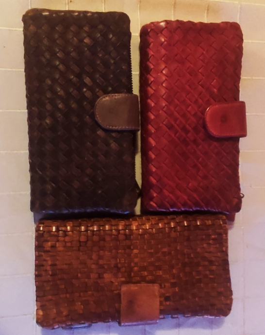 Prekrasni novčanici rebrastog uzorka od fine mekane, prave kože, s mnoštvom pretinaca za kreditne kartice te posebnim dijelom za novčanice i dijelom za kovanice, sa zatvaranjem na preklopnu kopču.